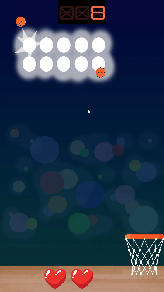 Side-On Arcade game inspired by the Trampoline Time minigame from Super Mario DS. Carry basketballs to the hoop and score as high as you can before losing all your lives.